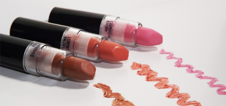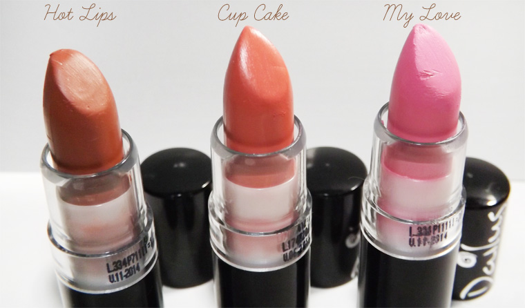 Escolhi 3 cores, mas em breve vou comprar mais já que gostei muito mesmo do resultado, a linha contém 15 cores inspiradas nos batons da Mac. Não tenho os da Mac para comparar (não essas 3 cores, tenho outros mac com outros semelhantes de outras marcas…..ufaaa! ) mas no fim do post tem uma tabelinha pra vocês verem.