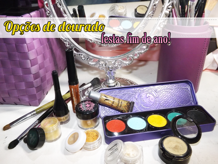 7. Sombra Lime Crime, paleta ChinaDoll, cor GoldFish – douradão com brilhos para todo lado, parece muito a Goldilux. O preço é bem salgado , 35 dólares + frete, o ponto positivo é que a LimeCrime não faz testes em animais. (Resenha) (Comprar)8. Sombra/pigmento Contém 1g, cor Dourado especial dicromático – fofura de pigmento! Pra quem quer algo bem suave, delicado e dourado. Agradáveis R$23 (Resenha)E para fechar o post com “chave de ouro” (desculpem, não resisti! hahaha!) segue abaixo um look usando apenas o Copperfield da L.A. Colors ,um tutorial usando primeiro a Goldilux e depois a sombra creme da Vinyx e por último usando a sombra/pigmento da Contém.