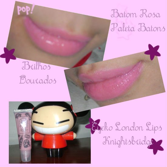Para fazer um lábio rosa que nem Barbie usei um rosinha bem cheguei (hehe) da paleta de batom e gloss.