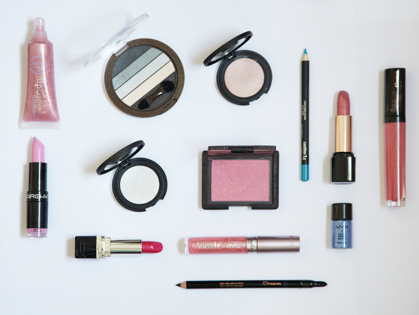 Algumas sugestões de produtos legais: *Gloss rosa 100 de Una, *Gloss rosa da Body Store, *Batom rosa 565 da Dior, *Batom rosa 3 de Una, *Sombra azul da Nyx, *Batom 325 da Archy, *Quarteto Aquarela 4, *Lápis azul Una, *Lápis azul raibow da Contem 1 g, *Blush angelika Nars, *Gloss rosa vinyl da Rimmel, *Sombra rosa e pérola individuais da Make up for ever.
