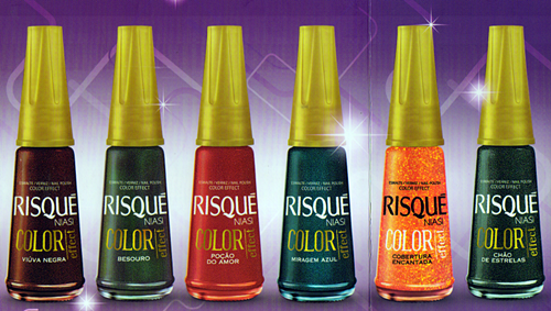 O que aconteceu é que a coleção foi um sucesso e eles resolveram colocar mais cores, mudaram ate o vidrinho, achei um chaaaaaaaarme *-* e eu particularmente estou louquinha para comprar essas cores *-* As fotos não são oficiais ainda, mais já teve meninas que acharam nas lojinhas, aeee o/ isso mesmo a Risqué disponibilizou as cores antes de fazer o lançamento oficial. isso não é o máximo ?NOVA COLEÇÃO COLOR EFFECT.