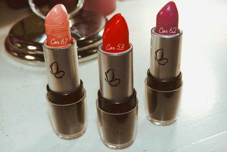 Batom cor 53 – Fatal! Aquele super chic! Lábios com efeito aveludado é com a cor 53. Morri nesse batom minha gente, pode ser usado para festas, formaturas, casamento, dia dos namorados e onde você quiser chamar a atenção.Batom cor 62 – Um pouco mais sério e passa o ar de “mulher madura” se você quiser impressionar é só usar essa cor linda! Indicaria para ser usado mais a noite,além de que é a cor do inverno.O batom Vult tem cores plenas que fixam e promovem cobertura perfeita aos lábios. A ampla cartela de opções está conectada com as últimas tendências e permitem uma infinidade de resultados à maquiagem. Texturas subdivididas entre cremosas e cintilantes .É perfeito para preencher, colorir e valorizar os lábios.
