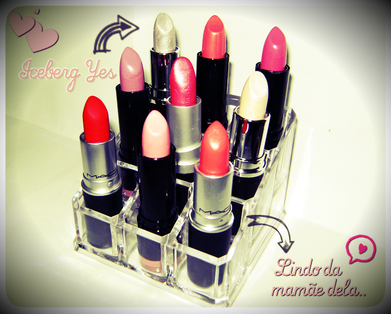 Essa semana estão nele alguns da Nyx que recebi da loja Makeup 4U Store e só testei não usei, as novidades da Yes Zero Grau, Batom Perfeito MakeB. meu queridíssimo, Ruby Woo e Vegas Volt da Mac que uso 90% das vezes nos passeios noturnos, assim que vierem outros a rotatividade começa..rs!