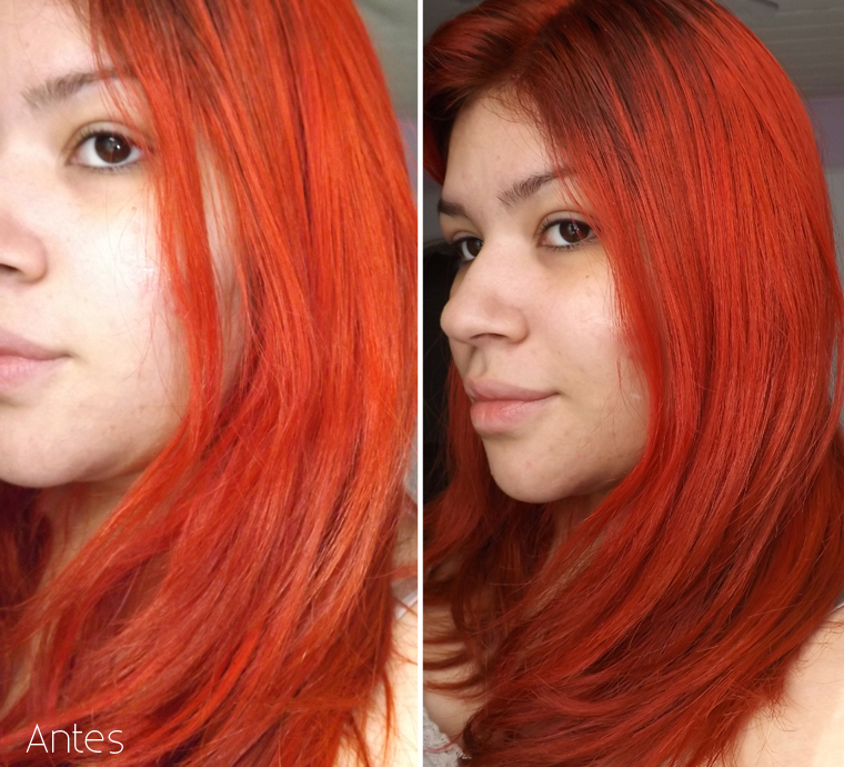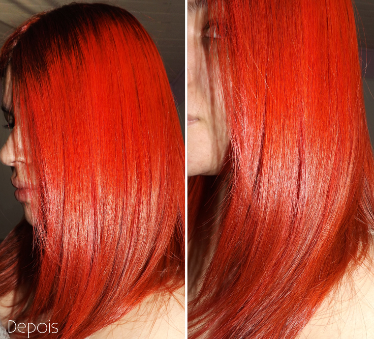 Passo 3 Máscara Capilar : Aplique sobre os cabelos molhados, massageie bem e deixe agir por 15 minutos. Enxague retirando o excesso.E o que eu achei? Bom não usei a embalagem toda e passei bem longe disso, estou acostumada com produtos densos e por isso achei a textura estranha, mas o resultado é maravilhoso, o cabelo ficou muito suave , limpo, hidratado, cheiroso e NÃO desbotou!!! Uhuuuu posso comemorar? Senti que até as pontas melhoraram o aspecto. Veja as fotos abaixo elas falam por si só.