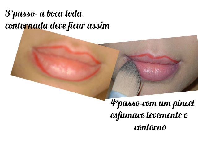 *Se voce deseja aumentar os lábios, desenhe um “falso contorno” para a boca, isso dará a impressão de lábios maiores.