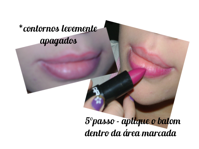 Você deve proceder da mesma maneira, aplicando o batom dentro da area marcada.