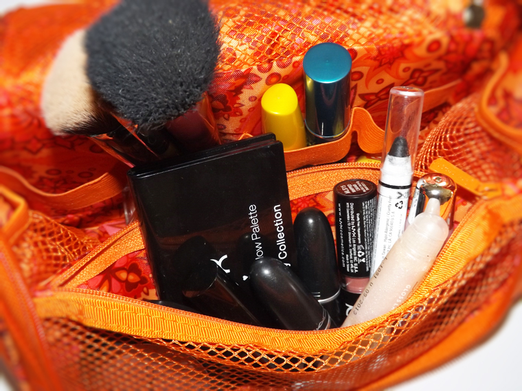 No quesito compartimentos: são 4 de “redinhas ou rendinhas”, uma grande onde cabem pincéis, hidratantes e outros itens maiores (acompanha um gancho) , dois nas laterais e um na frente onde usei para guardar paleta, blush ou pó.